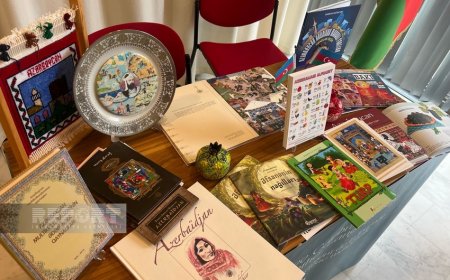 UNESCO-da tədbirdə Azərbaycan dili, əlifbasına aid kitablar, açıqcalar, suvenirlər nümayiş olunub - FOTOLAR