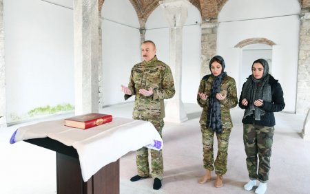 Prezident Şuşada yeni məscidin təməlini qoydu