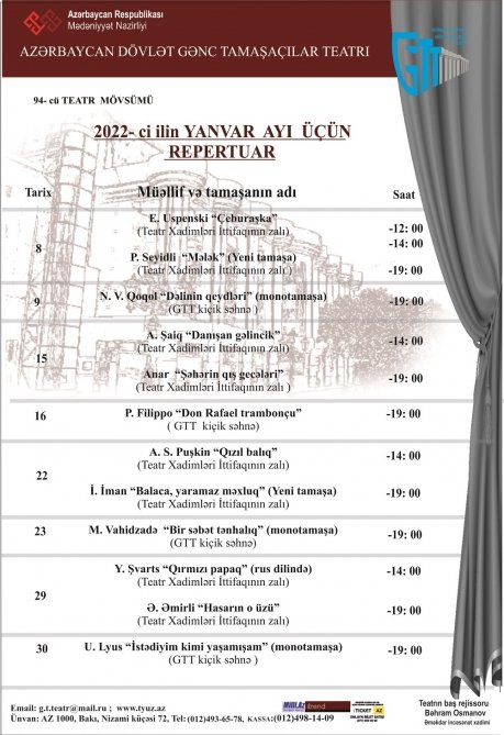 Azərbaycan Dövlət Gənc Tamaşaçılar Teatrının yanvar repertuarı maraqlı tamaşalarla zəngindir.