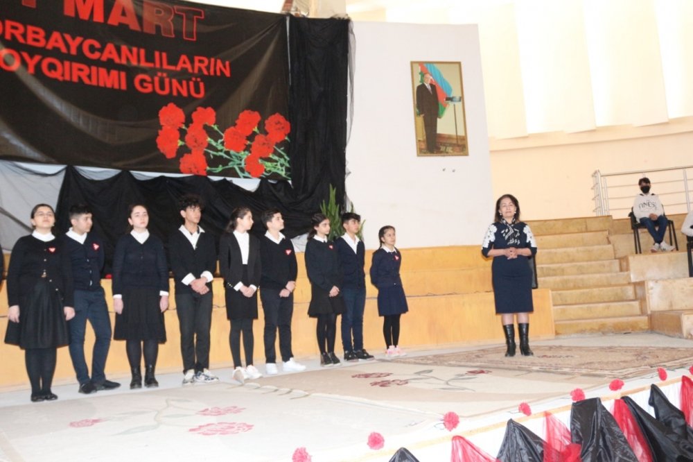 Tədbirlərdə məktəblilərin ifasında erməni vəhşiliklərinə şahidlik edən soyqırımı aktlarına həsr olunmuş şeirlər səsləndirilib, həqiqətlərimizin təbliğinə yönələn səhnəciklər təqdim edilib.