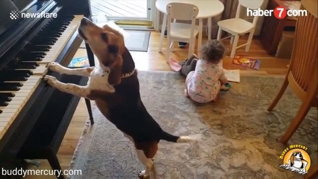 Sosial şəbəkələrdə yayılan videolarda görünür ki, köpək piano çalır və ulayaraq “mahnı oxuyur”.