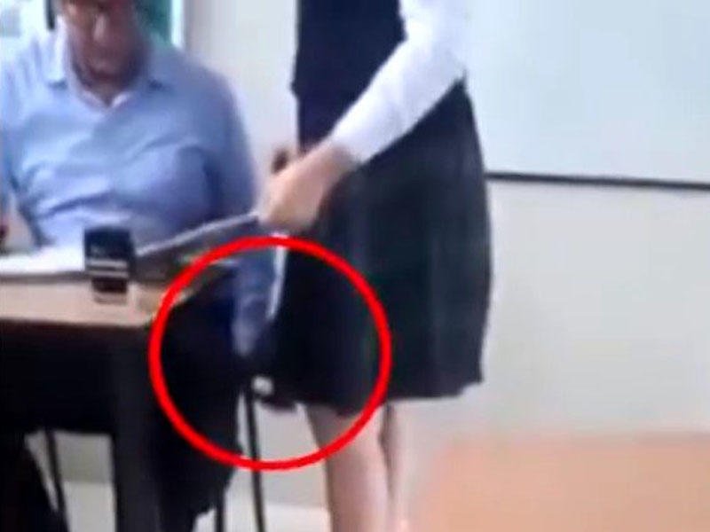 Cənubi Amerika ölkəsi Ekvadorda bir müəllim qız şagirdini masasına çağıraraq gizlicə ətək altı görüntülərini çəkib.
