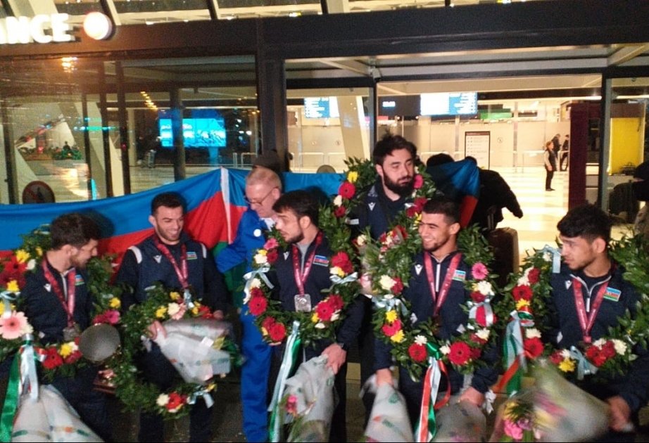 Avropa çempionatında ikinci yeri tutan Azərbaycan güləşçiləri Vətənə dönüblər