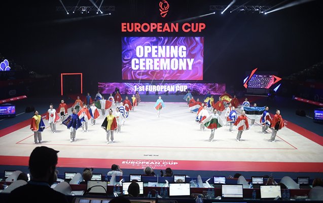 Sonra Avropa Kuboku açıq elan olunub və Azərbaycan Dövlət Himni səsləndirilib. Açılış mərasimi bədii hissə ilə davam edib. Bədii gimnastlar tərəfindən musiqi sədaları altında rəqs şousu nümayiş olunub.