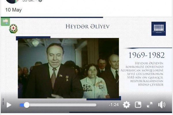 Azərbaycan Respublikasının Prezidenti İlham Əliyev özünün “Facebook” səhifəsində ümummilli lider Heydər Əliyevin anadan olmasının 96-cı ildönümünə həsr edilmiş videoçarx paylaşıb.