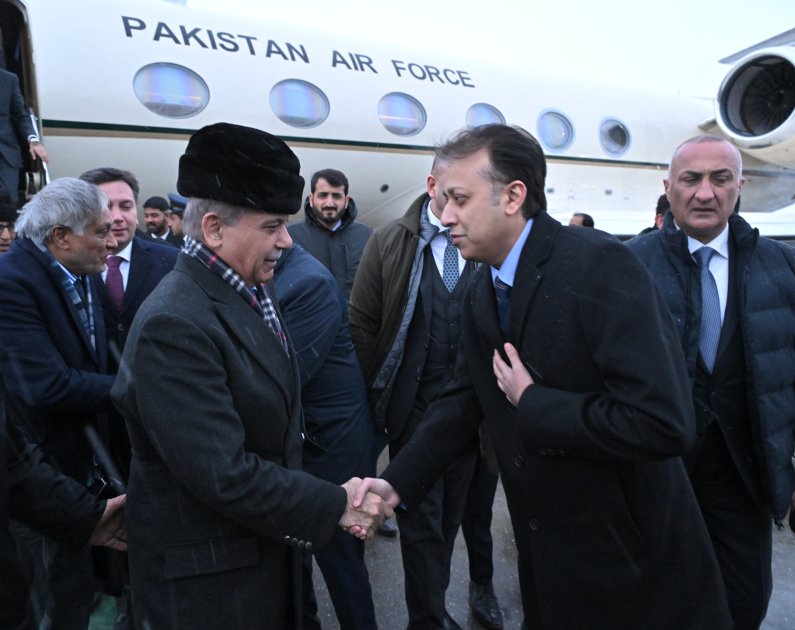 Pakistanın Baş naziri Məhəmməd Şahbaz Şərifi hava limanında Azərbaycan Respublikası Baş nazirinin birinci müavini Yaqub Eyyubov, xarici işlər nazirinin müavini Yalçın Rəfiyev və digər rəsmi şəxslər qarşılayıblar.