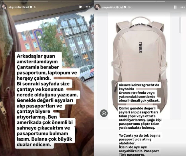 “Dostlar, mən hazırda Amsterdamdayam. Çantam pasportum, noutbukum və başqa hər şeylə birlikdə oğurlanıb. Çanta və onun yeri barədə növbəti səhifədə məlumat verəcəyəm. Onlar, adətən, qiymətli əşyaları götürüb pasportları və çantanı harasa atırlar. Mən ABŞ-də çox vacib səhnədə çıxış etməli idim və pasportumu tapmalıyam. Kim tapsa, çox dua edəcəyəm”, – deyə Aleyna Tilki qeyd edib.