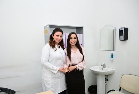 Leyla Əliyeva qeydiyyat, qəbul, həkim, baş tibb bacısı, manipulyasiya otaqlarına baş çəkib, mərkəzin tibbi personalı ilə həmsöhbət olub, onlarla şəkil çəkdirib.
