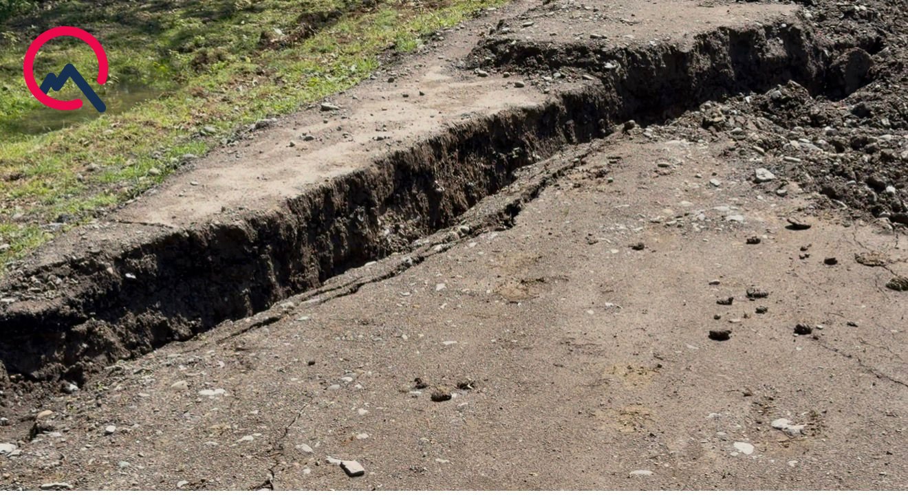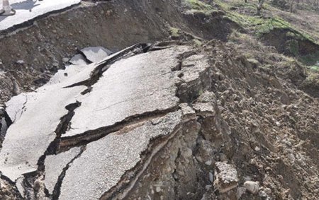 Yol örtüyündə dərin yarıqlar və çökmələr əmələ gəlib. Ərazidə yerləşən iri ağaclardan biri də kökündən çıxaraq aşıb.