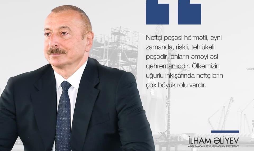 "Neftçi peşəsi hörmətli, eyni zamanda, riskli, təhlükəli peşədir, onların əməyi əsl qəhrəmanlıqdır. Ölkəmizin uğurlu inkişafında neftçilərin çox boyük rolu vardır”.