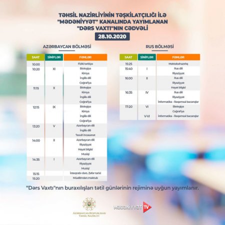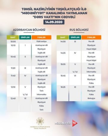 “Dərs vaxtı”nın bu günə olan cədvəli - FOTO