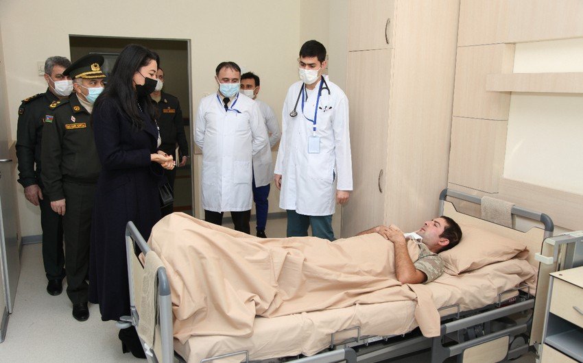 Səbinə Əliyeva yaralı hərbçilərə baş çəkib