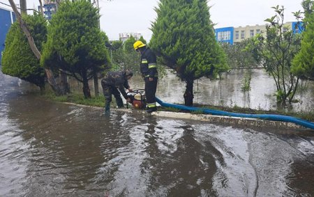 Sumqayıtda yarımstansiya ərazisi sel sularından təmizlənir